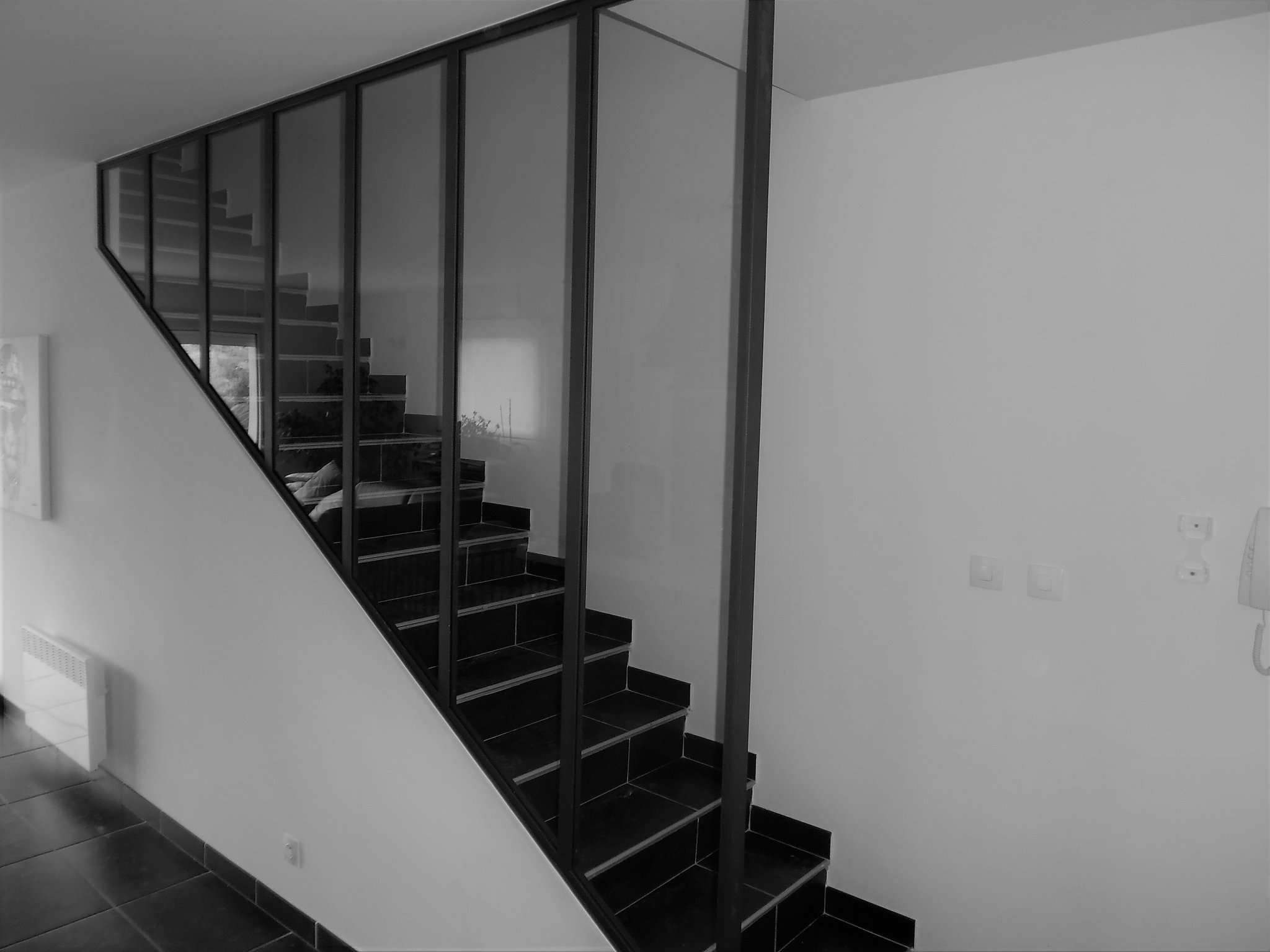 Découvrez nos réalisations de menuiseries intérieures en profils gamme froide. Choix multiples de forme, de verre et de finition (brute, vernis ou thermolaquée).